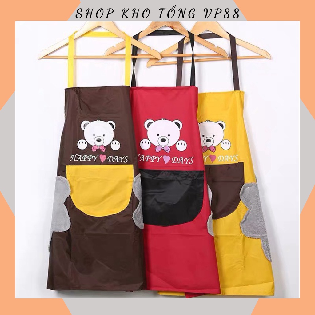 Tạp dề nội trợ dạng yếm in hình GẤU có túi, chống nước, chống dầu mỡ, có thể lau tay trực tiếp 88209 SHOP KHO TỔNG