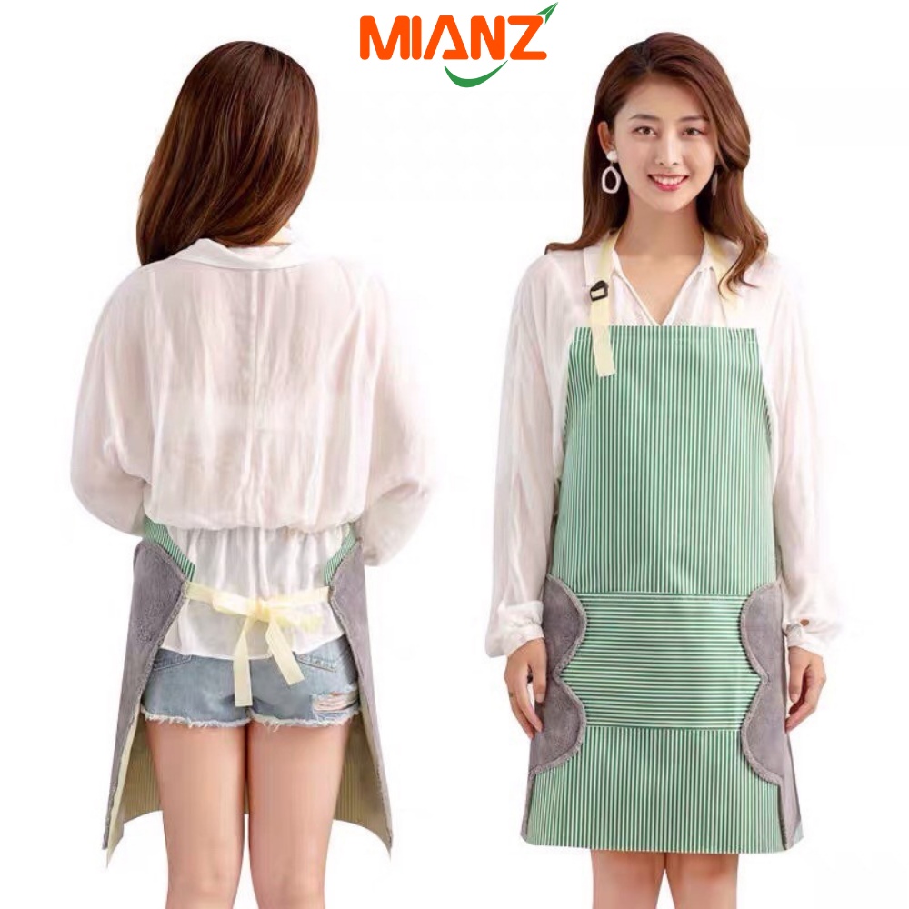 Tạp dề nội trợ kẻ sọc chống thấm kèm túi để điện thoại và chỗ lau tay tiện lợi cho các chị em nội trợ Mianz Store