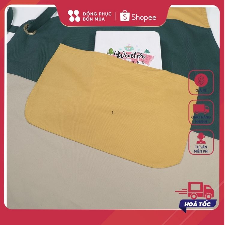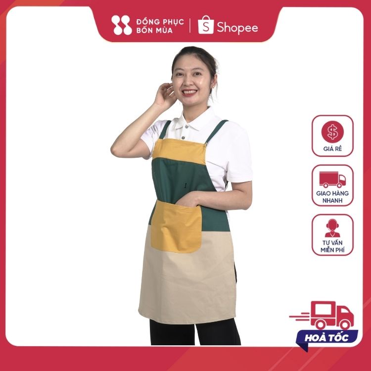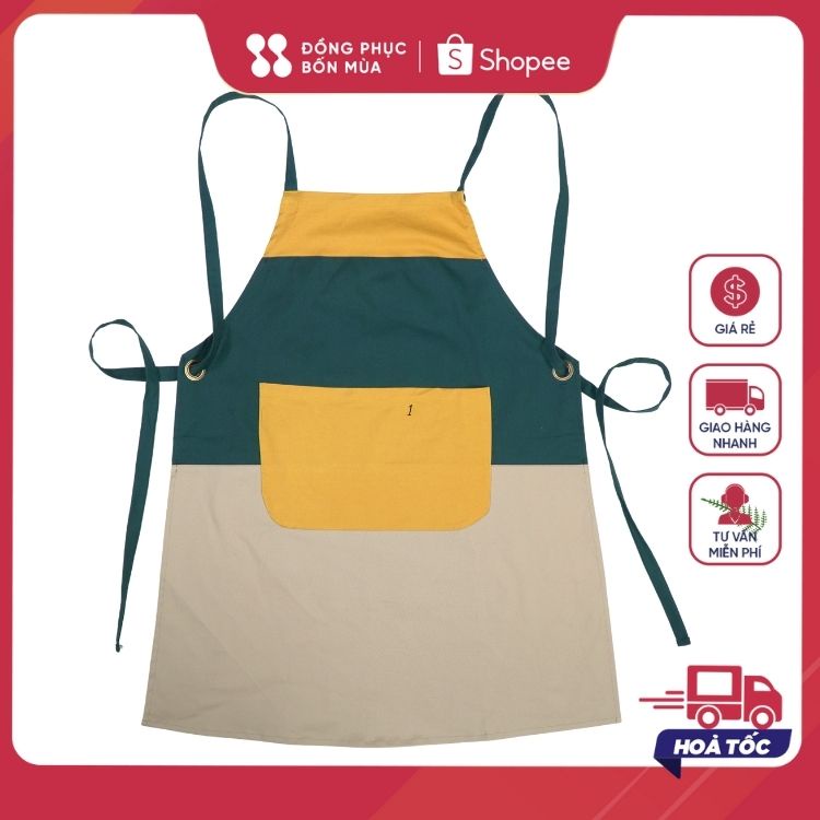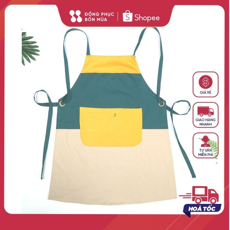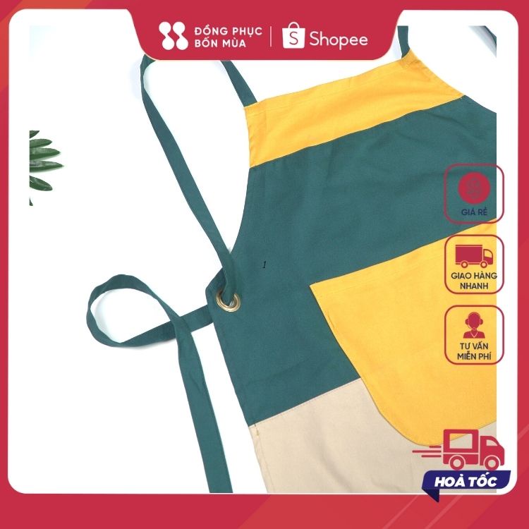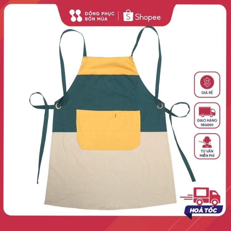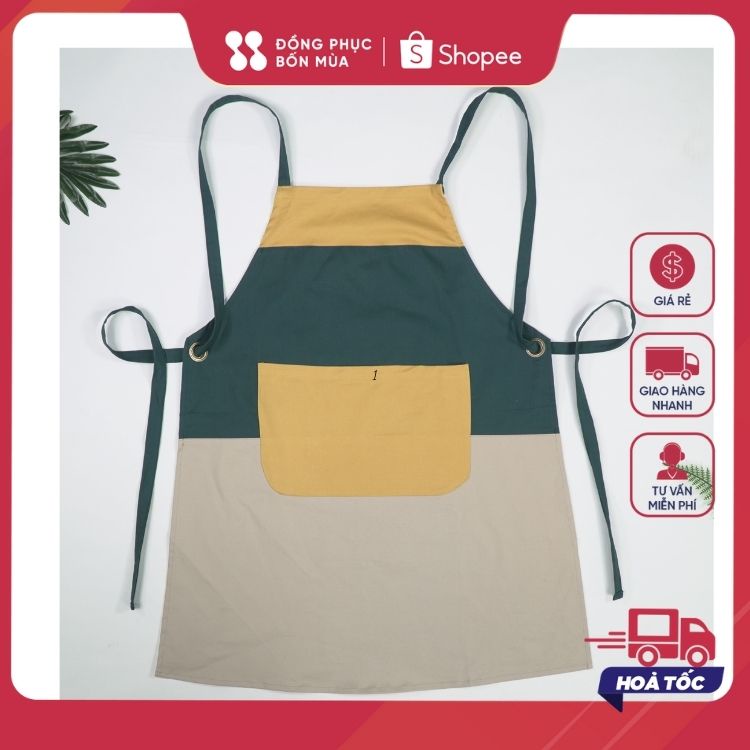 Tạp dề yếm trơn phối màu rất xinh chưa in logo, dây đeo cổ có thiết kế theo phong cách mới với có dây có thể tăng giảm độ dài