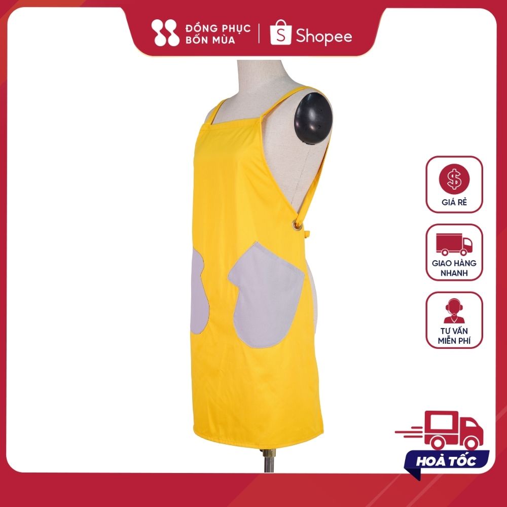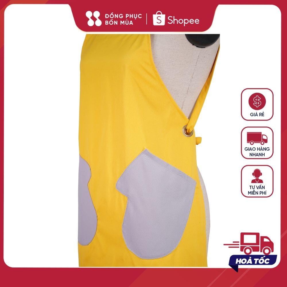 - Tạp dề được may với CHẤT LIỆU VẢI KAKI cotton 100% CAO CẤP dày và đẹp, KHÔNG xù lông, không bị nhăn nên sang trọng, thoáng mát khi mặc