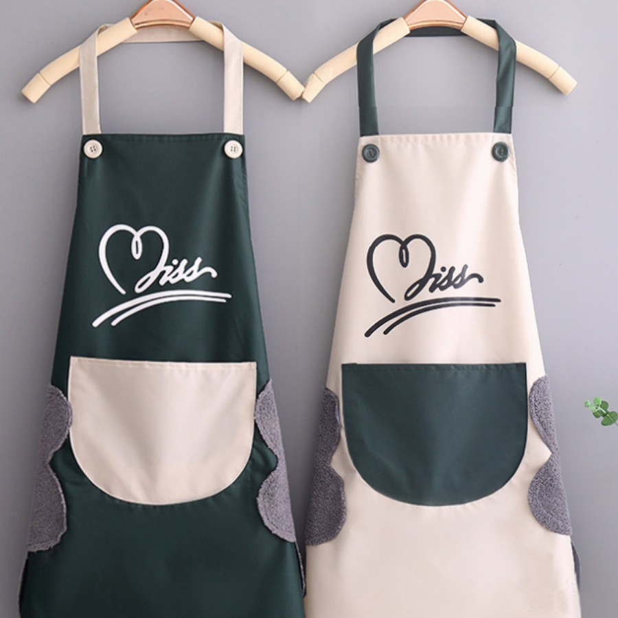 + Mẫu tạp dề pha chế, tạp dề nấu ăn chống thấm nước chống bám bẩn họa tiết hoa cúc và chữ Miss được phối hợp với túi và dây đeo màu tạo điểm nhấn vô cùng bắt mắt, ngoài ra tạp dề được thiết kế thêm chi tiết lau tay vô cùng tiện lợi cho người sử dụng.+ Tạp dề là dụng cụ đắc lực không thể thiếu của các bà nội trợ,đầu bếp, hay nhân viên phục vụ nhà hàng quán cà phê trong quá trình nấu ăn hoặc phục vụ khách hàng nha!
