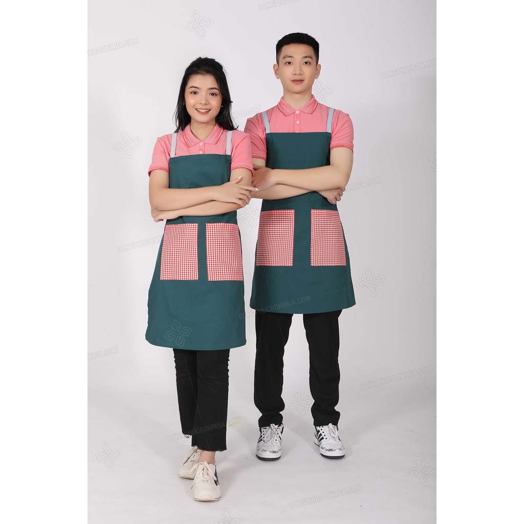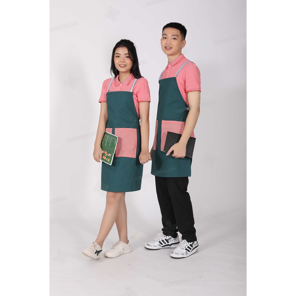 - Size: free size Nam Nữ đều sử dụng được vì đối với tạp dề yếm trên cổ có tăng đơ để tăng giảm độ dài tạp dề.