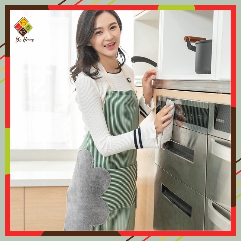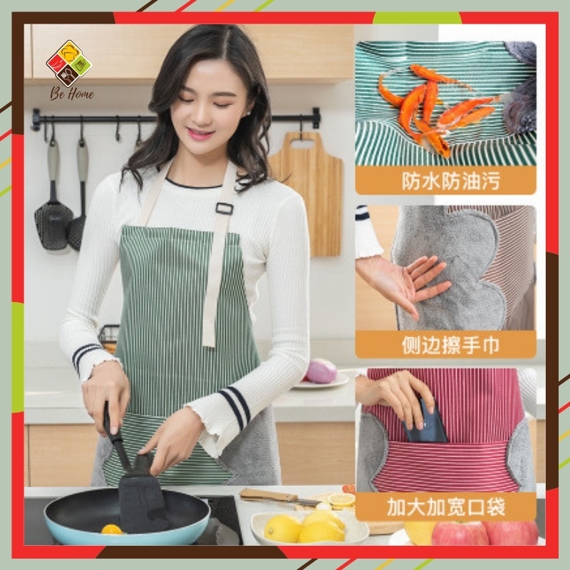 Tạp Dề Phong Cách Hàn Quốc BEHOME Tạp Dề Chống Thấm Nước Kẻ Sọc Có Khăn Lau Tay Bên Hông