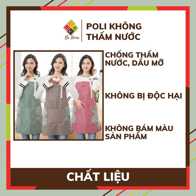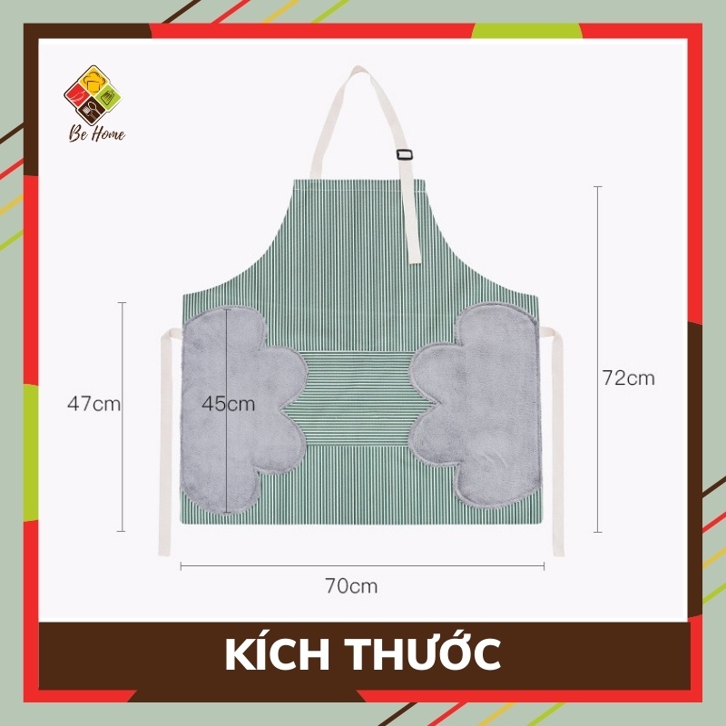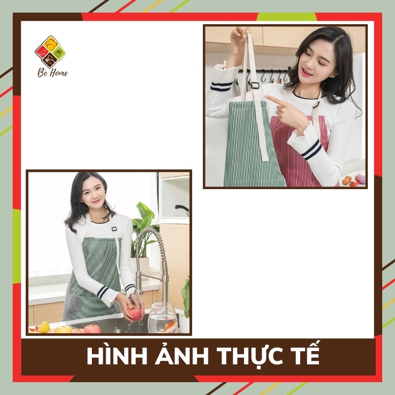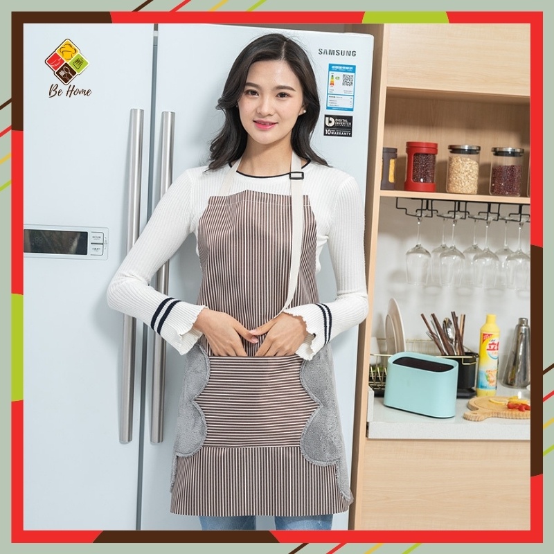 Giới thiệu Tạp Dề Phong Cách Hàn Quốc BEHOME Tạp Dề Chống Thấm Nước Kẻ Sọc Có Khăn Lau Tay Bên Hông