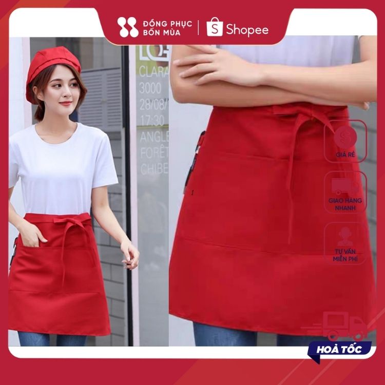 Giới thiệu Tạp dề phục vụ dáng ngắn nửa người - Màu đỏ đô, chất liệu vải kaki - Tạp dề phục vụ nhà hàng, quán cafe chuyên nghiệp