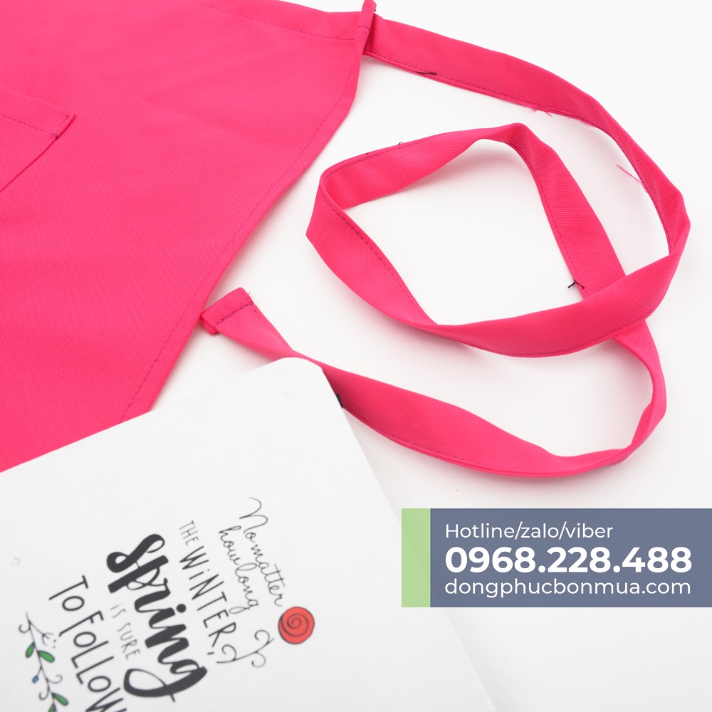 Tạp dề phục vụ màu hồng trẻ trung, dễ thương - Tạp dề ngắn, có túi trước rộng đựng đồ tiện dụng - Chất liệu vải bền đẹp