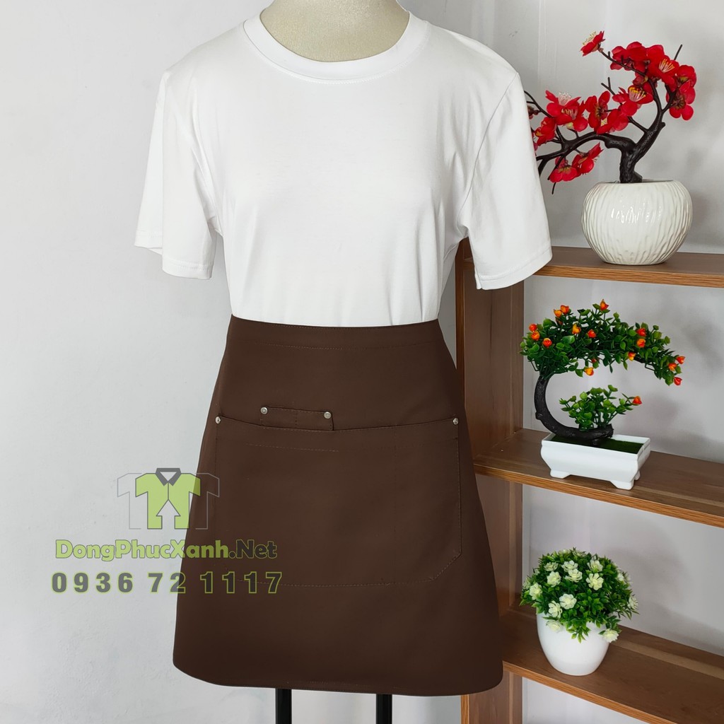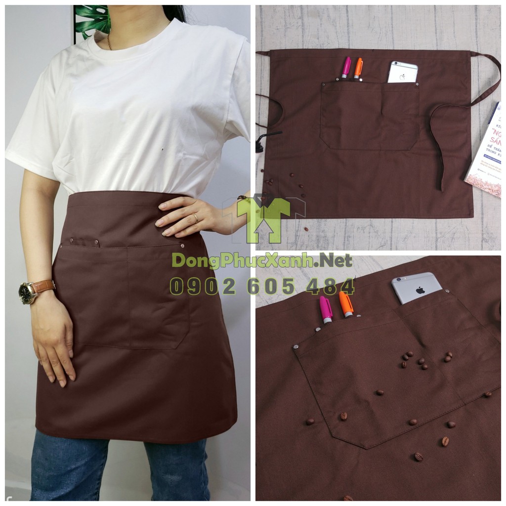 Tạp dề phục vụ màu nâu cafe Tạp dề trơn Tạp dề nhân viên nam nữ Mẫu tạp dề ngắn đẹp
