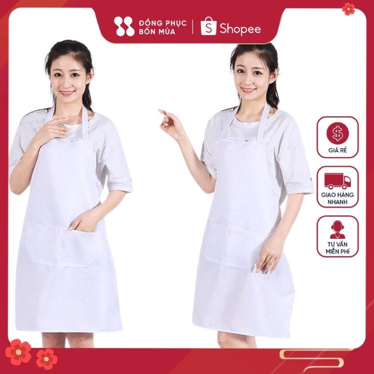 - Size: free size Nam Nữ đều sử dụng được vì đối với tạp dề yếm trên cổ có tăng đơ để tăng giảm độ dài tạp dề.