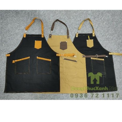 ** Lưu ý: Tạp dề may theo yêu cầu số lượng tối thiểu từ 20 chiếc. Số lượng ít hơn vui lòng chọn trong 20 mẫu tạp dề may sẵn đủ màu để in logo.