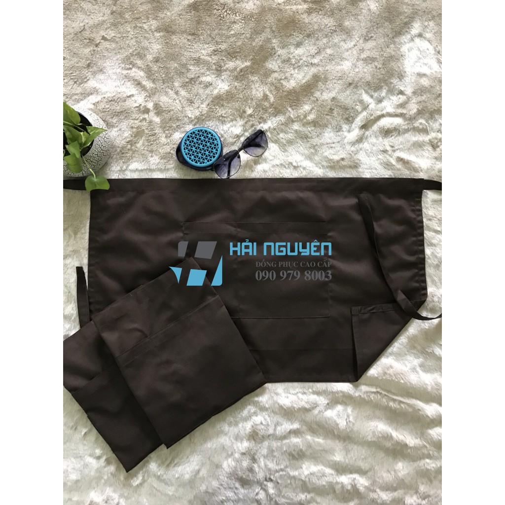 Tạp dề phục vụ ngắn trơn màu Nâu cao cấp dành cho Nam Nữ làm đồng phục tạp dề quán cafe