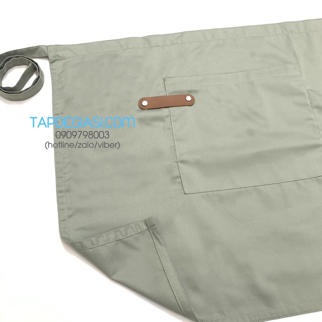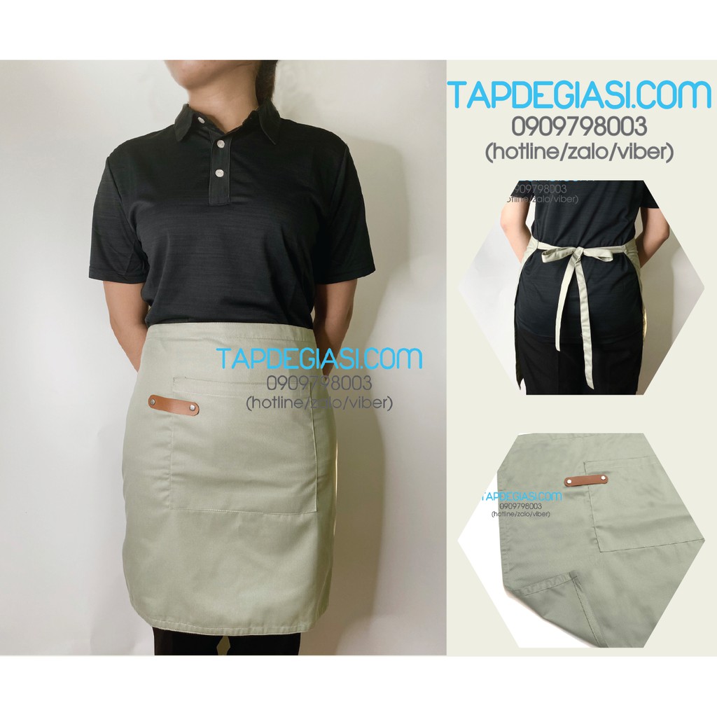 Tạp dề phục vụ ngắn Xám Nhạt đính da cao cấp làm đồng phục nhà hàng quán trà sữa