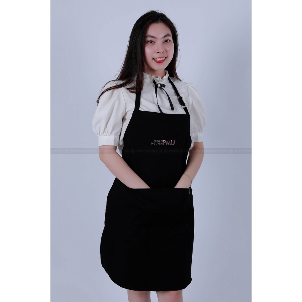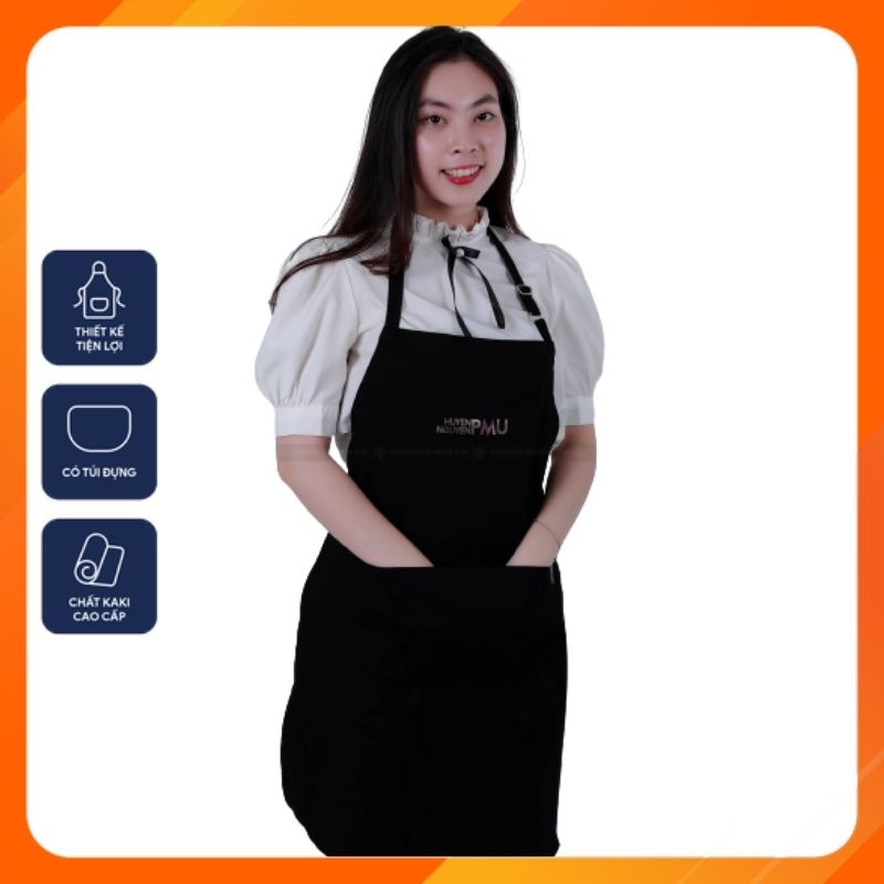 ✔️ Quy cách: Tạp dề yếm, có 2 dây cột sau, có túi đựng phía trước tiện dụng để đựng sổ ghi chép, sổ order, điện thoại, ipad…