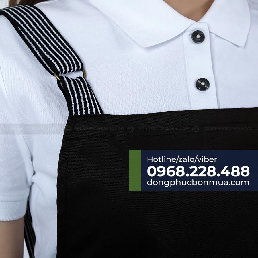 ✔️ Quy cách: Tạp dề yếm, có 2 dây cột sau, có túi đựng phía trước tiện dụng để đựng sổ ghi chép, sổ order, điện thoại…