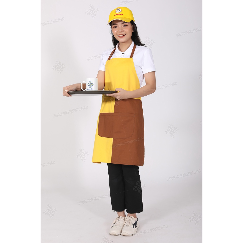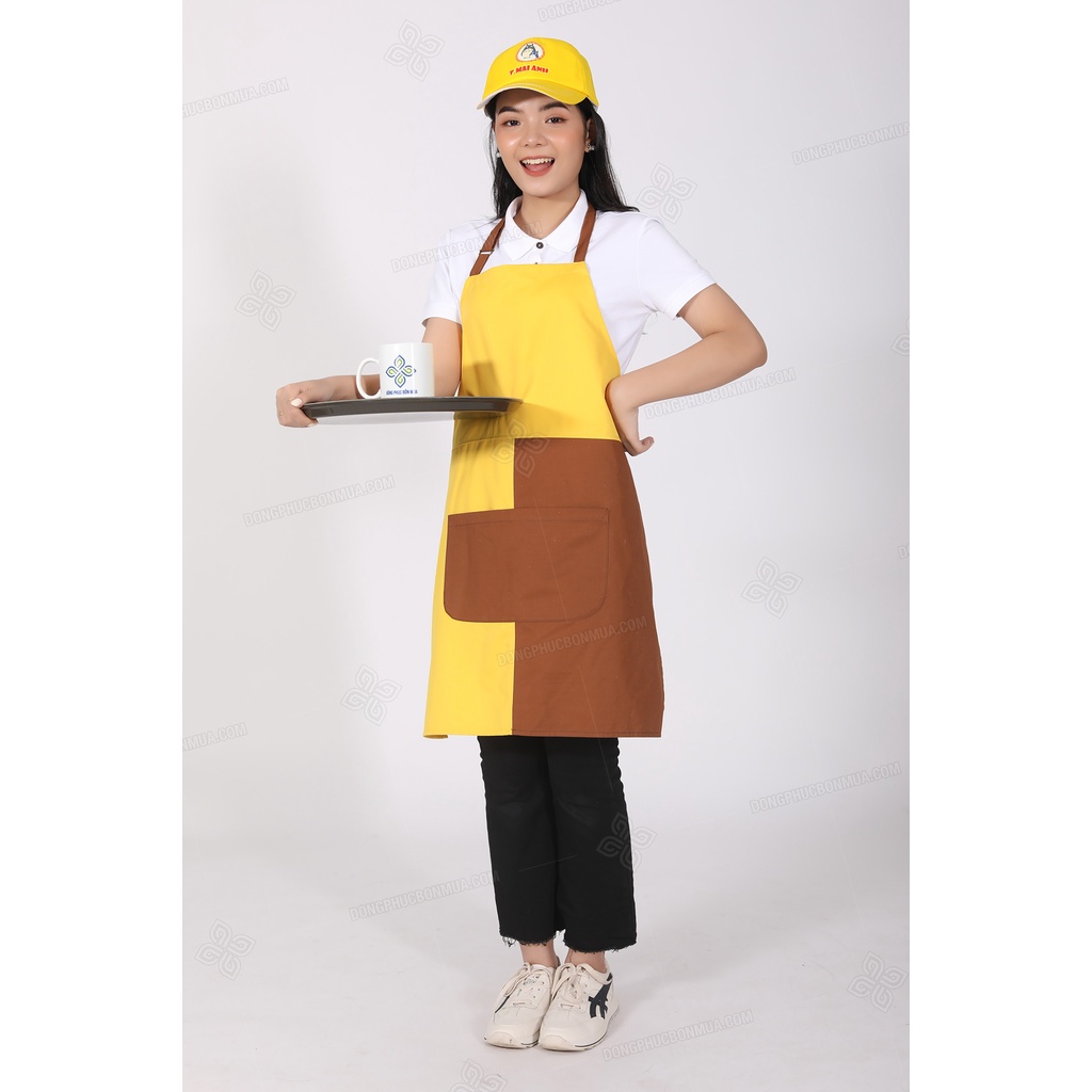 Tạp dề phục vụ phối màu vàng nâu độc đáo - Chất liệu kaki cao cấp loại 1 không nhăn, chống thấm, chống bám bẩn tốt