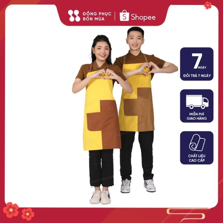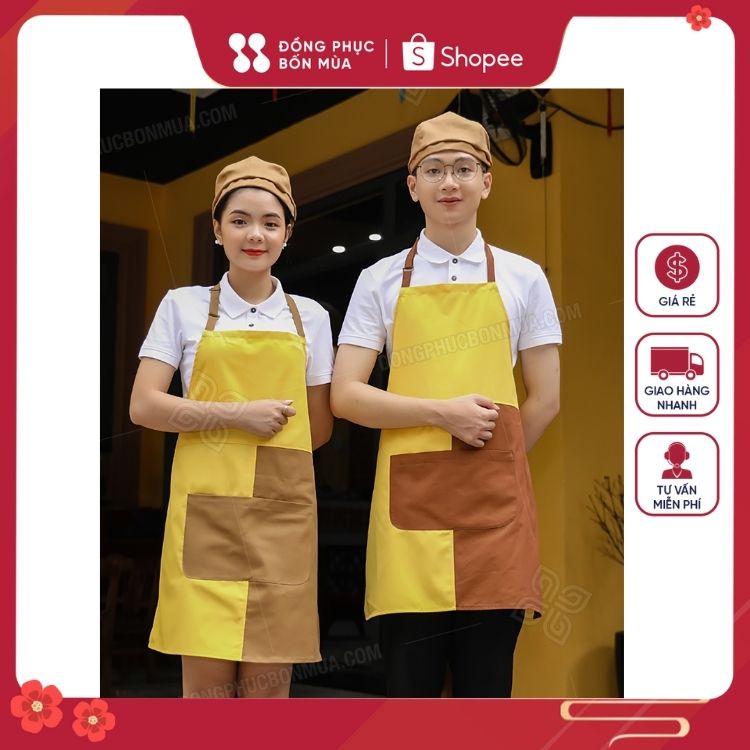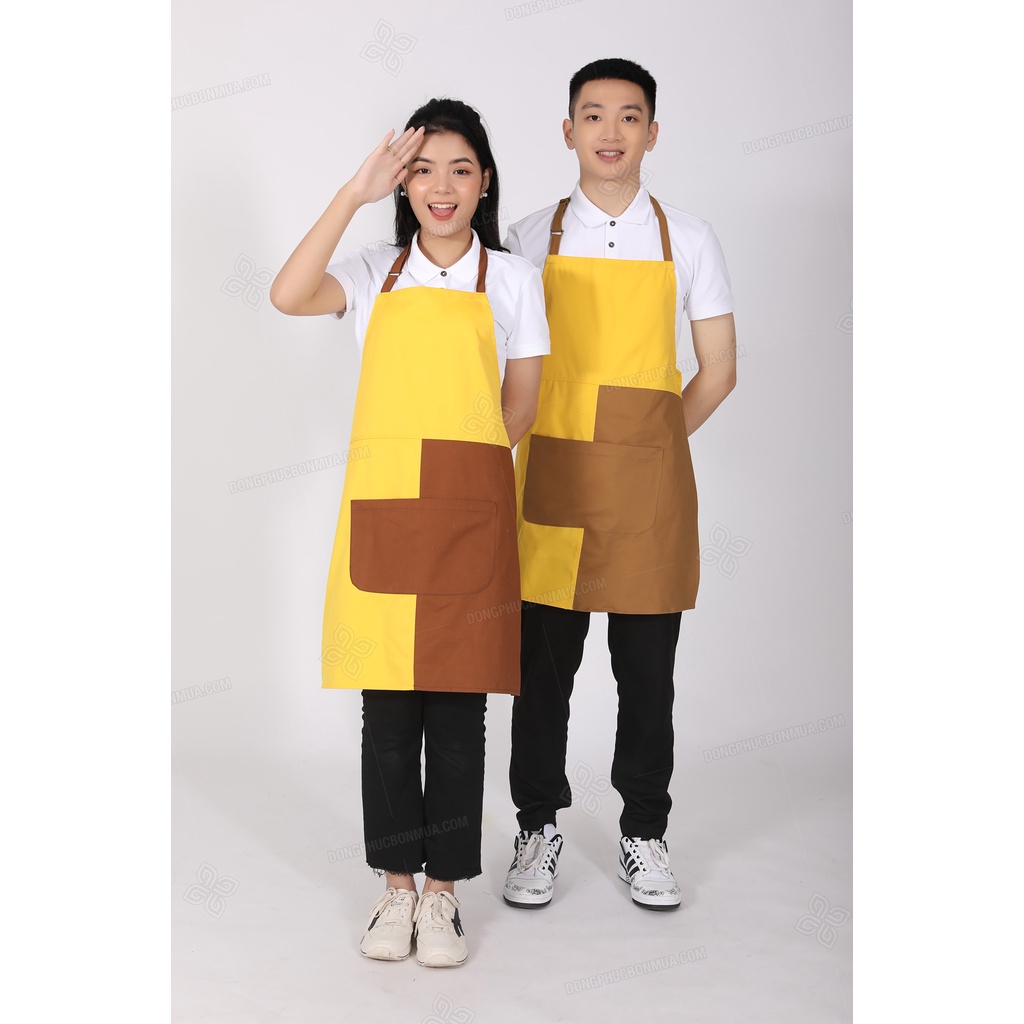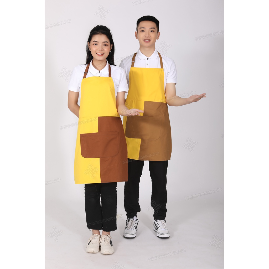 Nhà cửa & Đời sống > Dụng cụ nhà bếp > Tạp dề & gắng tay nấu nướng || Tạp dề phục vụ phối màu vàng nâu độc đáo - Chất liệu kaki cao cấp loại 1 không nhăn, chống thấm, chống bám bẩn tốtCòn hàng