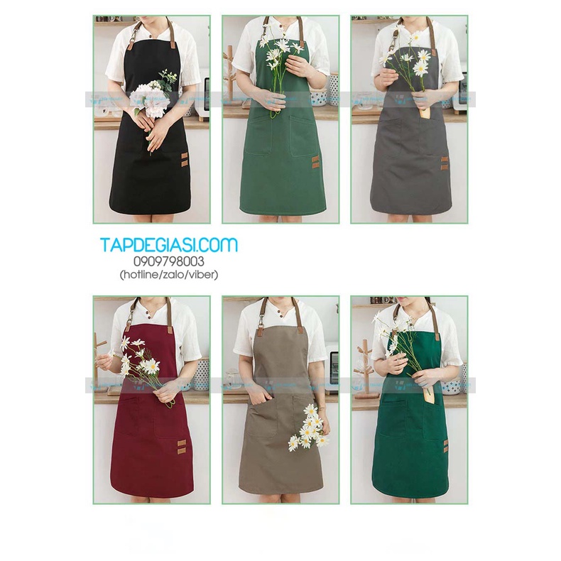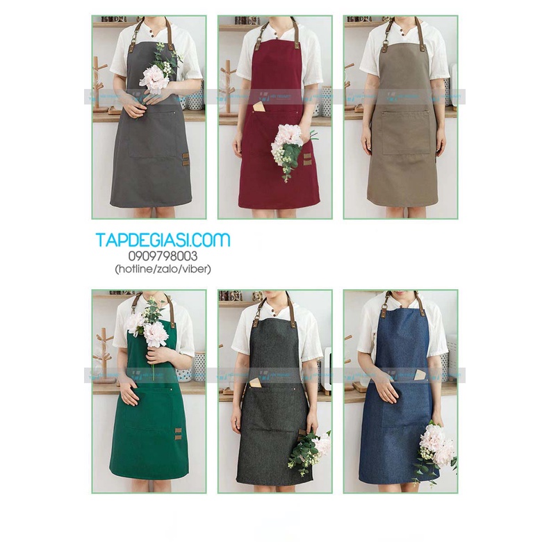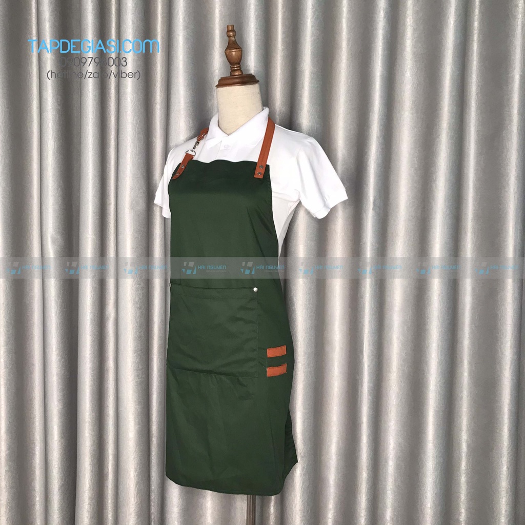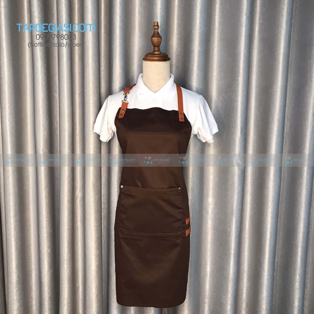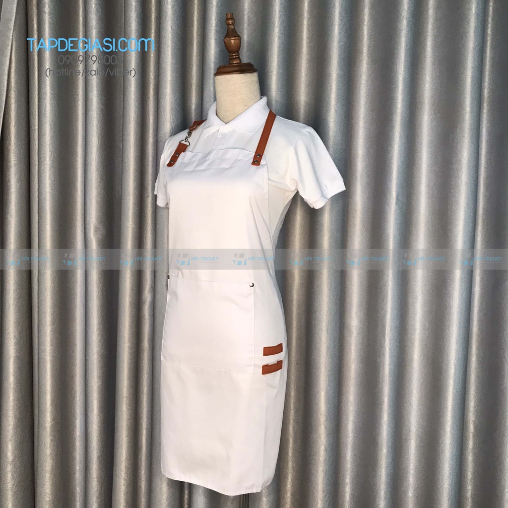 - Quy cách: tạp dề yếm đính da, đính nút cao cấp, có tăng đơ giảm độ dài, có 1 túi trước đựng sổ order