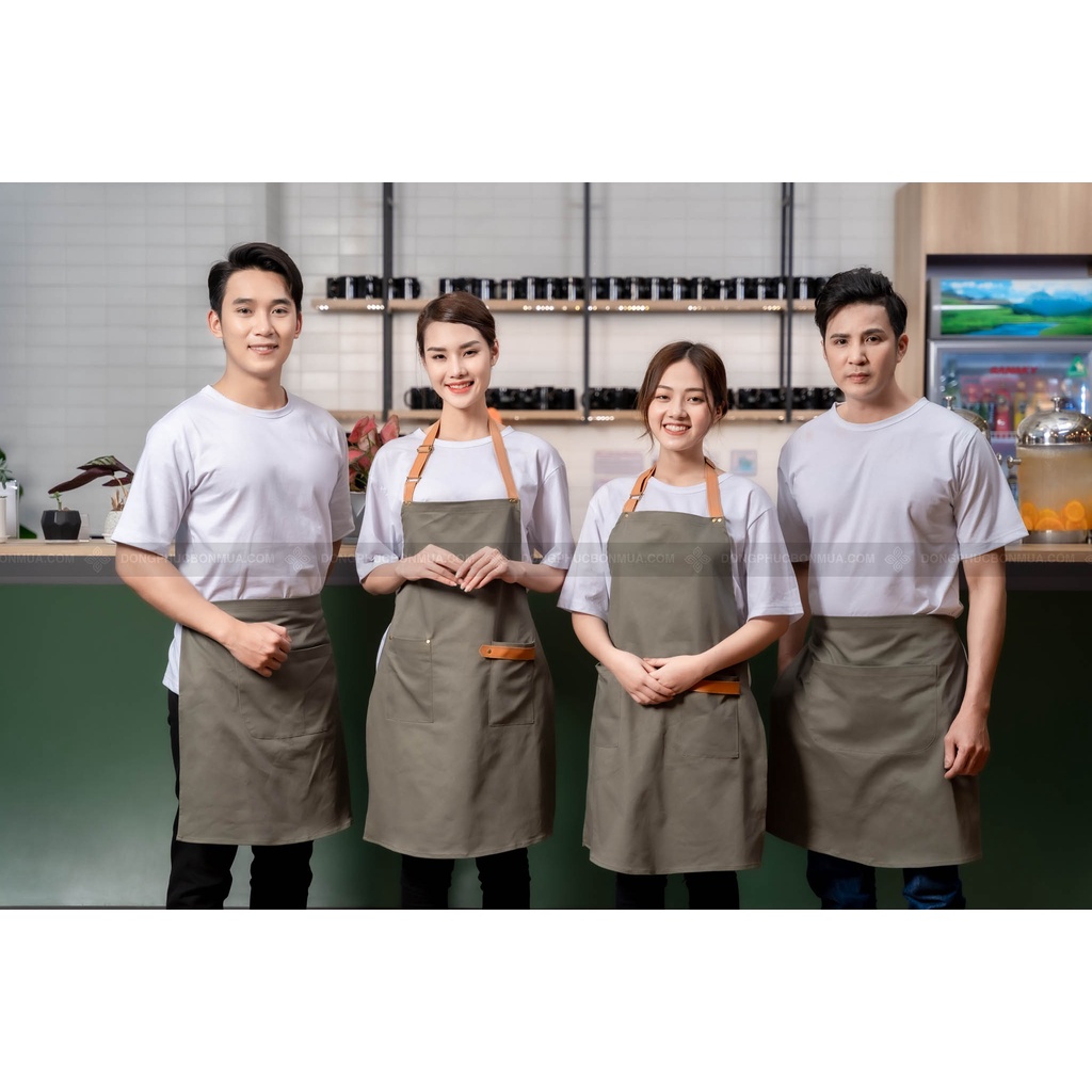 Tạp dề quán café đẹp cho nam nữ nhân viên phục vụ - Chất liệu kaki, phối da - Phù hợp làm đồng phục tạp dề chuyên nghiệp