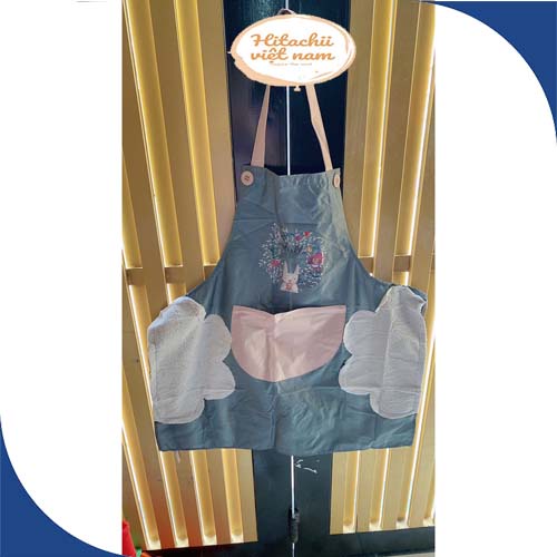 - Tạp dề được làm từ chất liệu polyester dày dặn, chống bám bẩn, chống nước