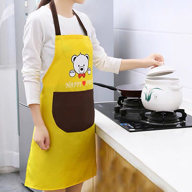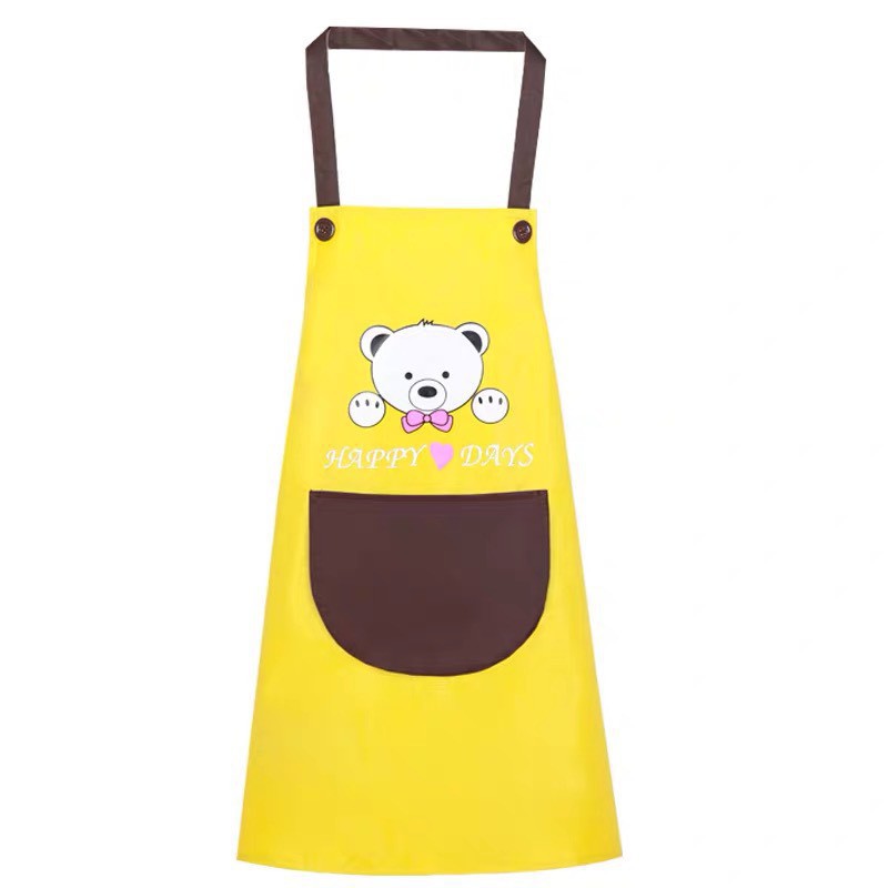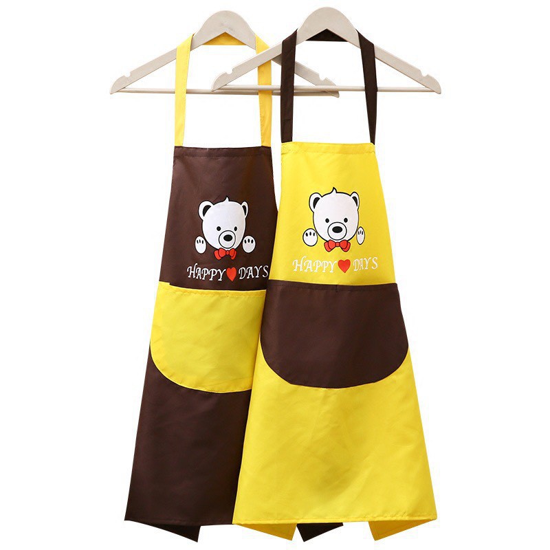 Tạp dề chống thấm nước loại dày- Mẫu tạp dề được phối với túi và dây đeo màu đen tạo điểm nhân. Phần dây đeo vắt qua cổ được thiết kế màu đen, với cúc cài nhựa có thể dễ dàng nới khi sử dụng. Với phần trước tạp dề được in hình Gấu dễ thương. Cùng với chất liệu vải không thấm nước, cùng đường may tinh tế, chắc chắn và bền đẹp.