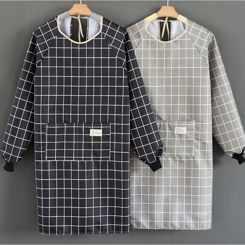 Tạp dề tay dài ca rô MÀU XÁM, MÀU ĐEN