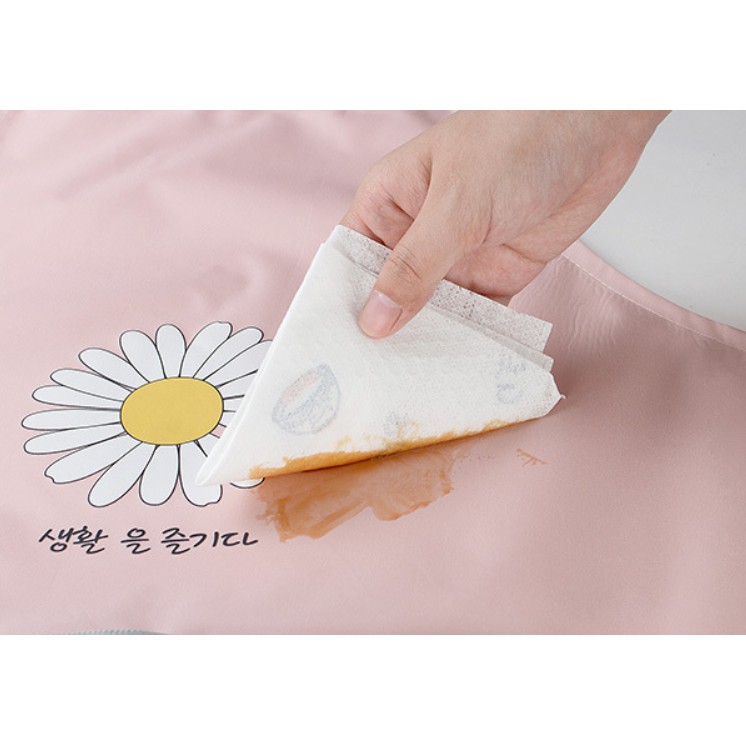 -Thiết kế khăn lau tay có thể xé dán được (vị trí trước bụng), dùng lau tay ướt khi nấu ăn rất tiện lợi