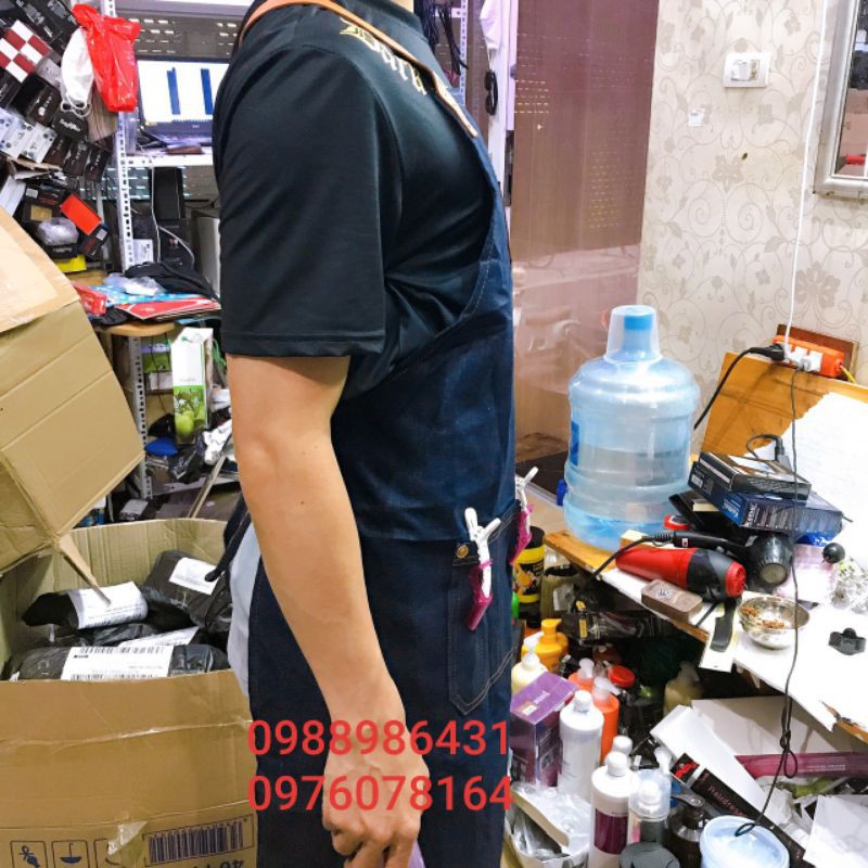- Tạp dề dùng cho thợ mặc, thợ cắt tóc làm tóc trong salon tóc barbershop- Chất liệu jean xanh coban đẹp chất