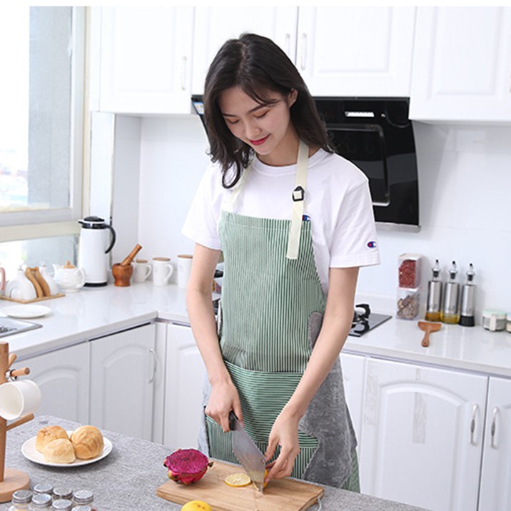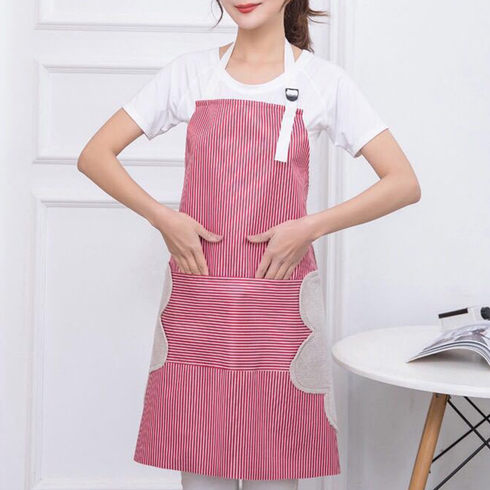 Tạp dề chống thấm nước cao cấp có túi đựng đồ | Tap dề kẻChất liệu vải bền, lót da PU không thấm nước