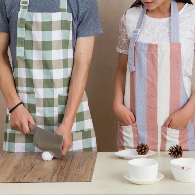 Giới thiệu Tạp dề vải cotton 100% họa tiết caro xanh lam, xanh lá