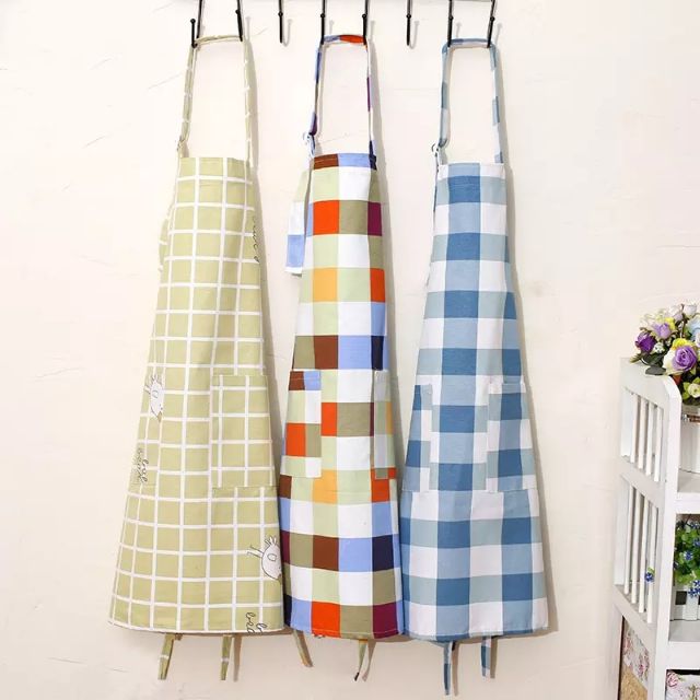 Tạp dề vải cotton 100% họa tiết caro xanh lam, xanh lá