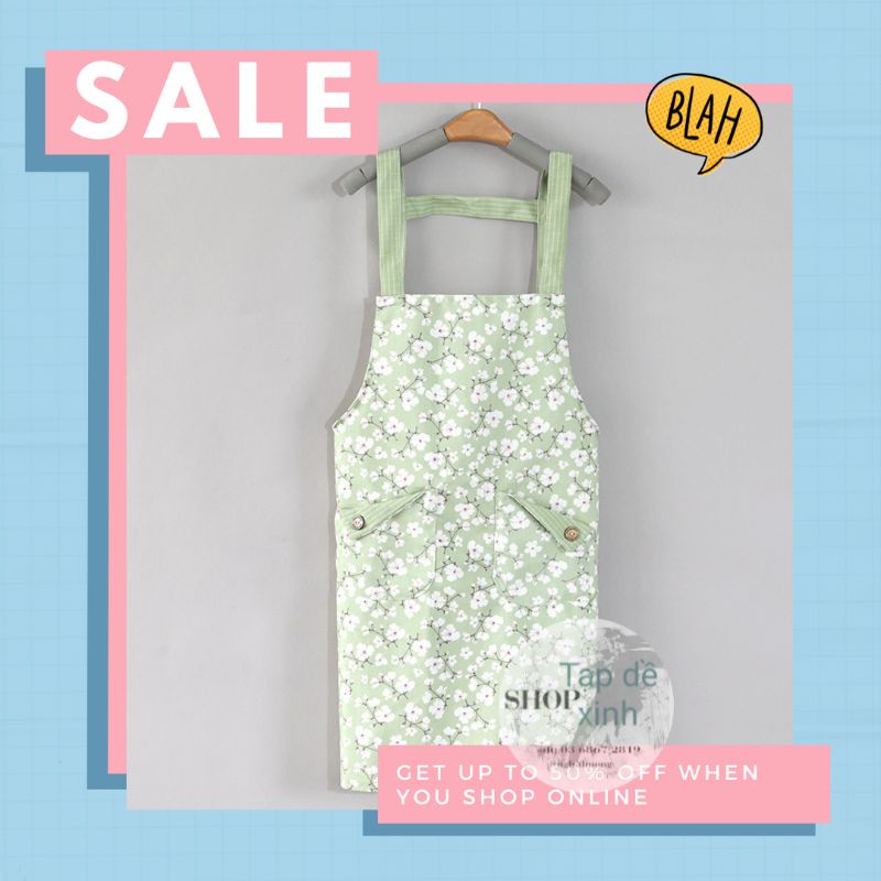 Giới thiệu Tạp dề vải cotton thô phong cách Nhật họa tiết sakura hoa anh đào màu sắc vintage 2 quai đeo vai free size có túi sẵn
