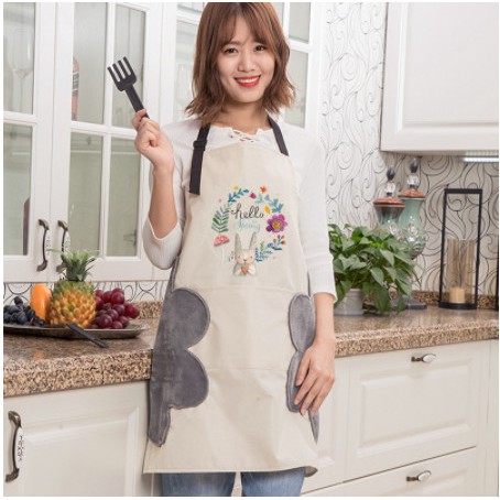 🔸 Quy cách: Có túi phía trước để đặt vật dụng như điện thoại, vật làm bếp.. và 2 tấm lót ở hai bên để lau tay