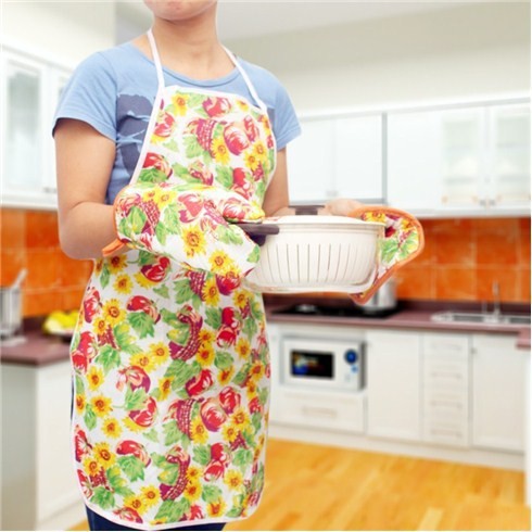 ❷ Tạp dề có công dụng chống văng dầu, mỡ chiên xào, tránh làm dây vết bẩn vào quần áo khi nấu ăn.