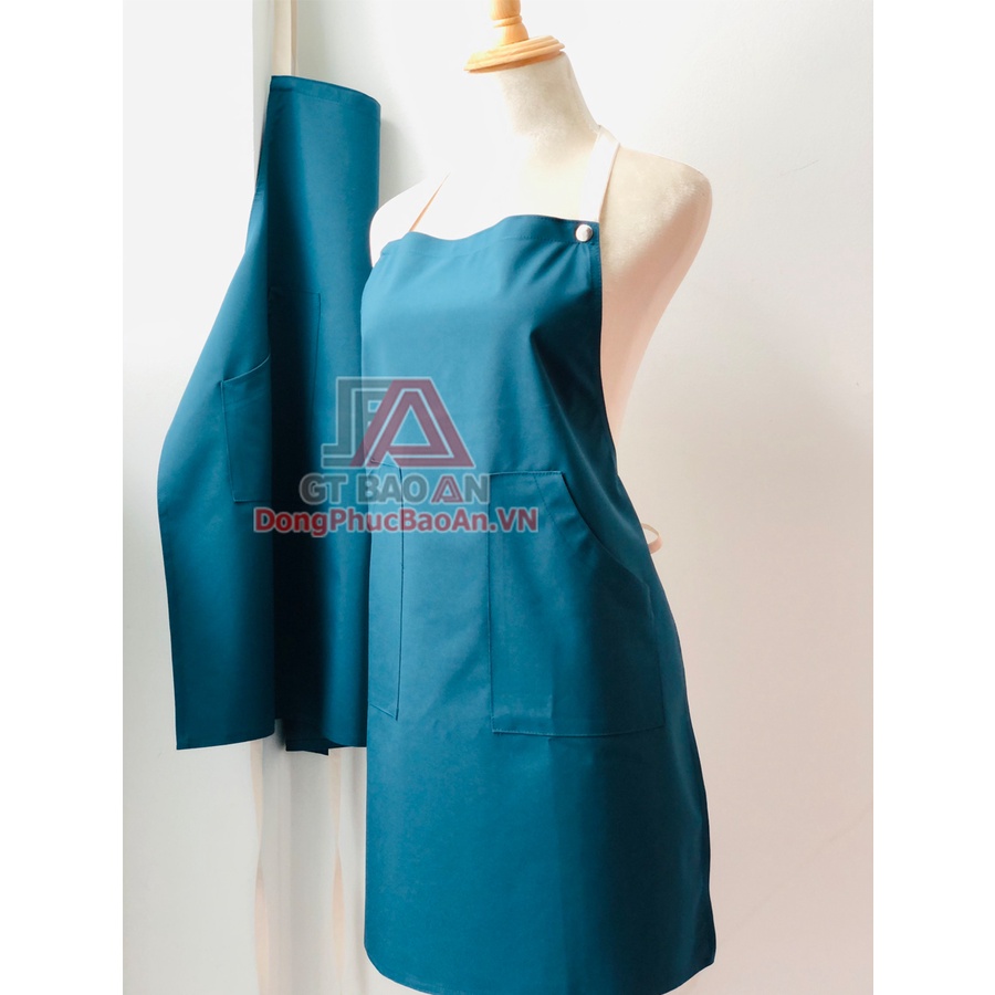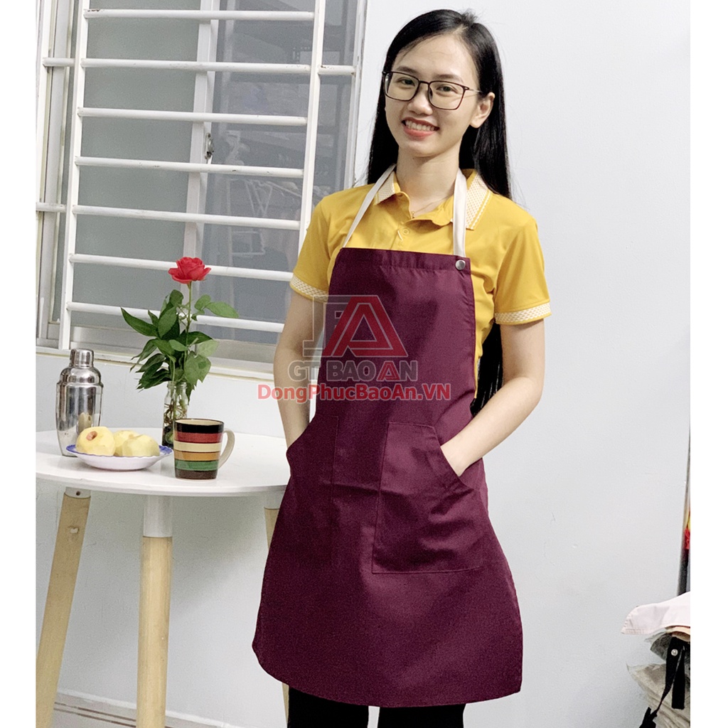 - Tạp dề vải dù với thiết kế đơn giản, dạng tạp dề yếm hay còn gọi là tạp dề đeo cổ. Mang lại nhiều giá trị tiện dụng cho người mặc. Bảo vệ tốt trang phục bên trong hiệu quả, tránh bụi bẩn.