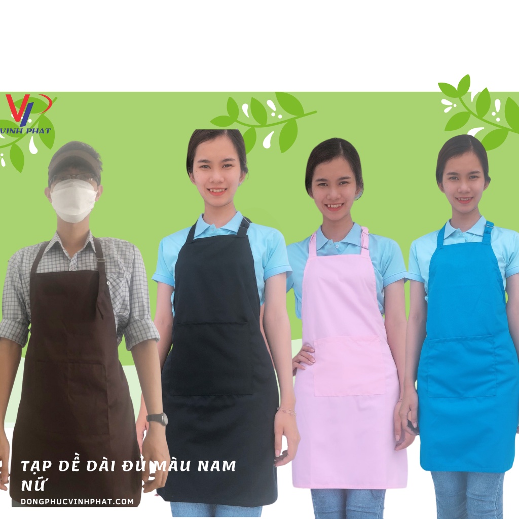 - Tạp dề yếm tạp dề dài màu xanh được sản xuất tại Đồng Phục Vĩnh Phát luôn được đánh giá 5* từ khách hàng