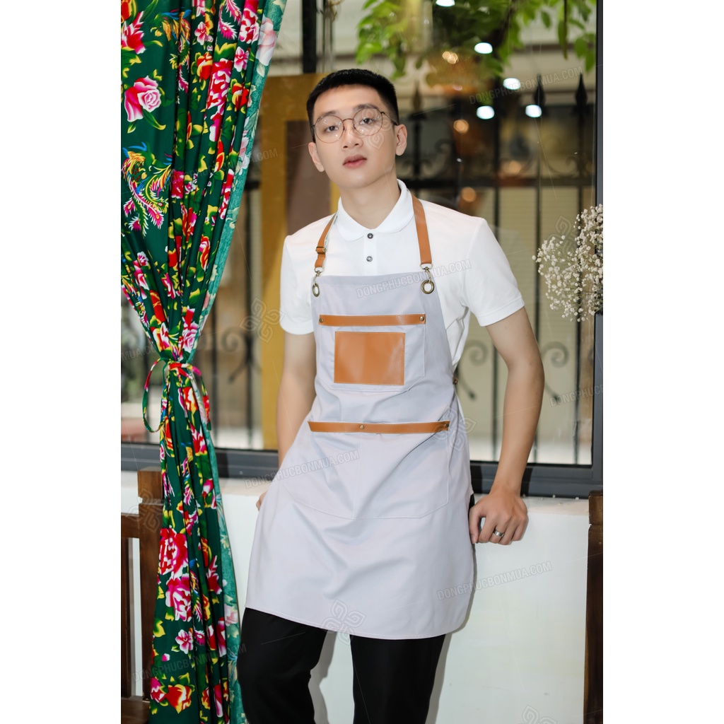 Tạp Dề Vải kaki cao cấp Chống Thấm Phục Vụ Nấu Ăn, Làm Bếp, Nhà Hàng Dùng Cho Nam/Nữ sẵn hàng