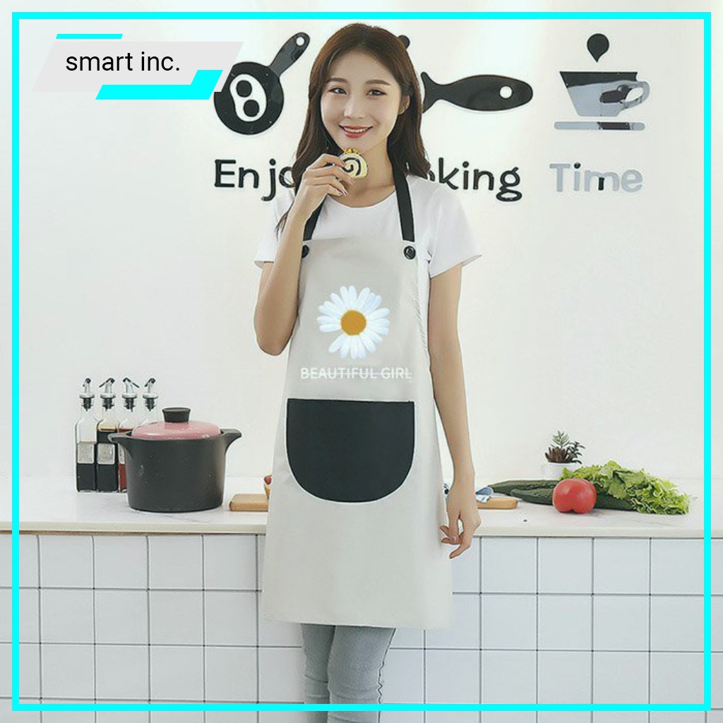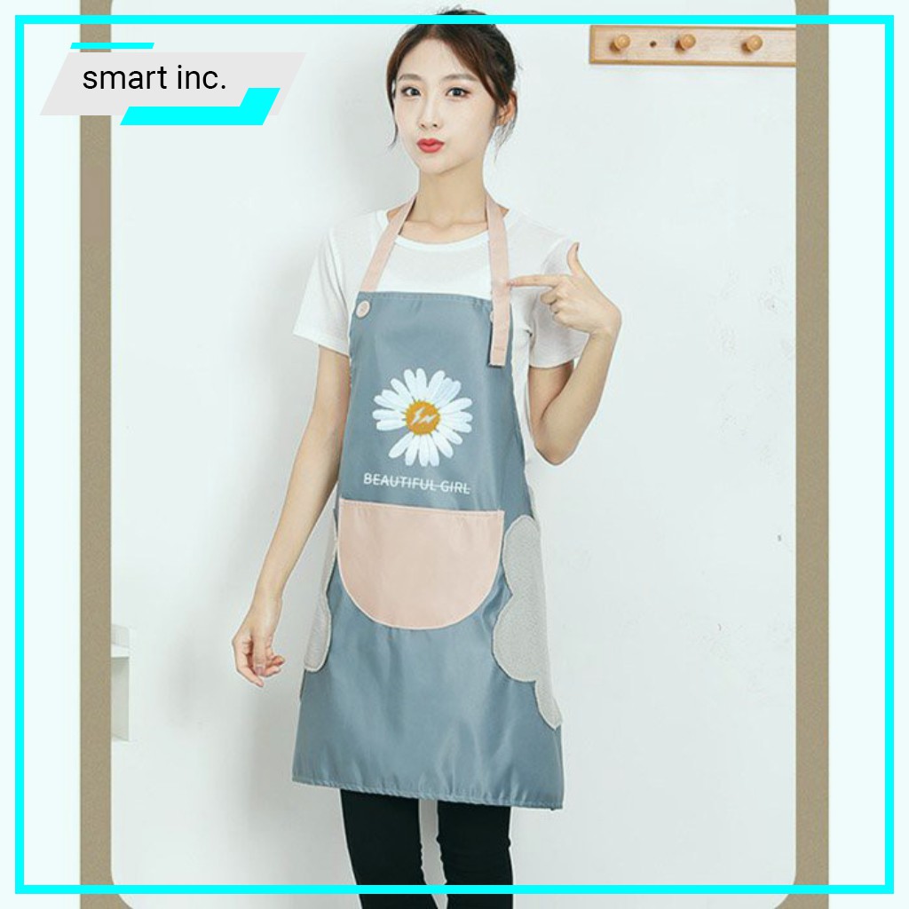 - Tạp dề màu sắc nhã nhặn, trang trí hoa cúc dễ thương và thiết kế tiện dụng khiến cho việc bếp núc trở nên thú vị hơn