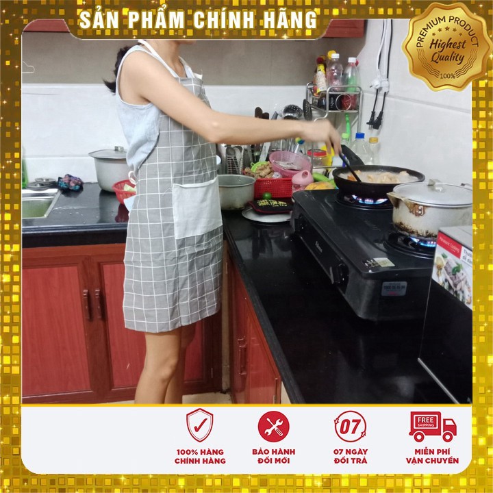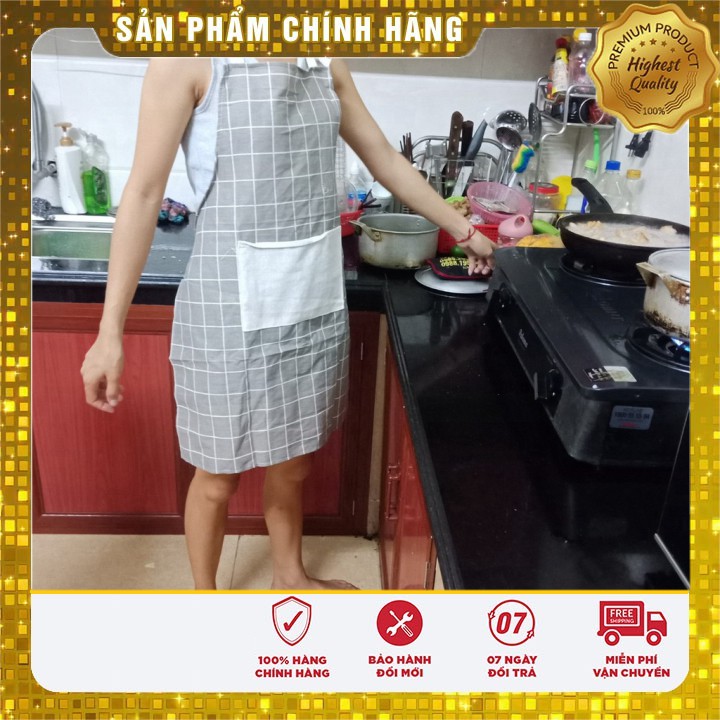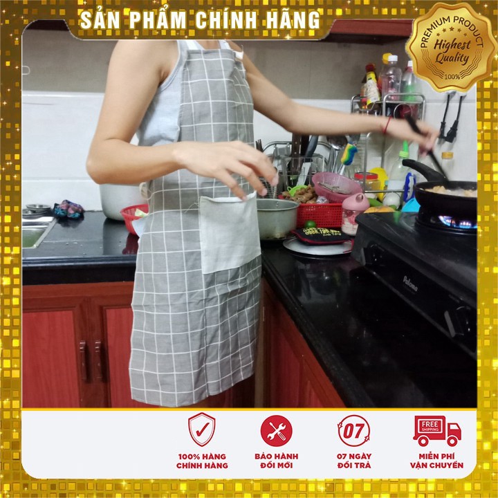 Nhà cửa & Đời sống > Dụng cụ nhà bếp > Tạp dề & gắng tay nấu nướng || Tạp dề vải nhà bếp kẻ ô màu ghi sáng 67 x 61.5cmCòn hàng