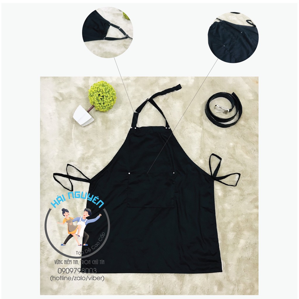 Tạp dề yếm đen Đính Nút cao cấp dành cho phục vụ nhà hàng quán trà sữa cafe