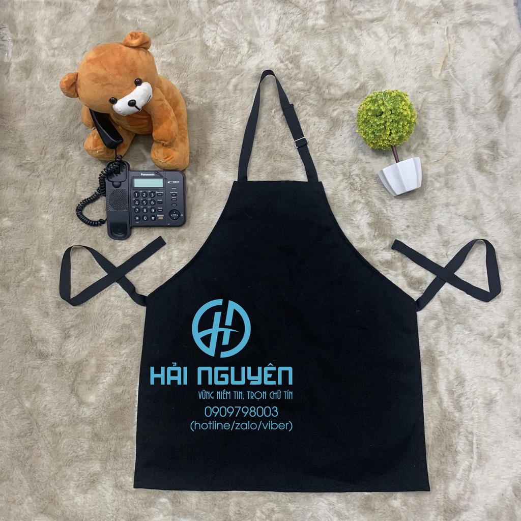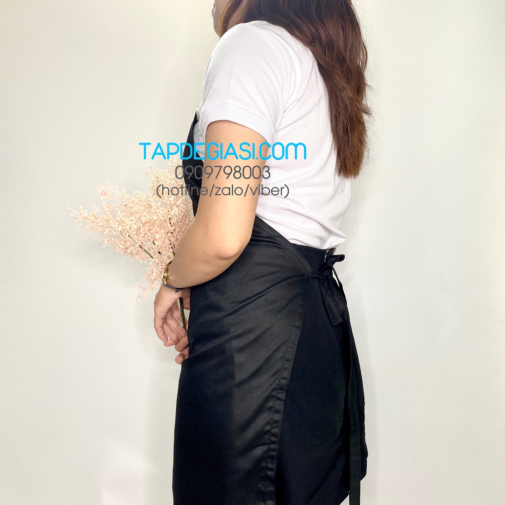 Tạp dề yếm đen trơn cao cấp làm đồng phục kaki cotton 65 xịn