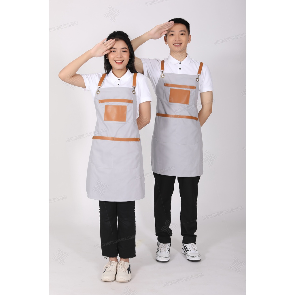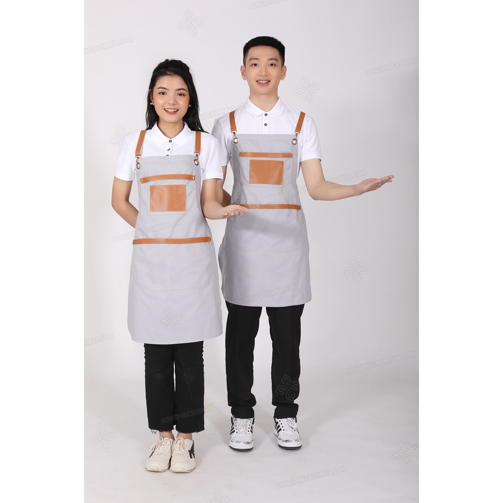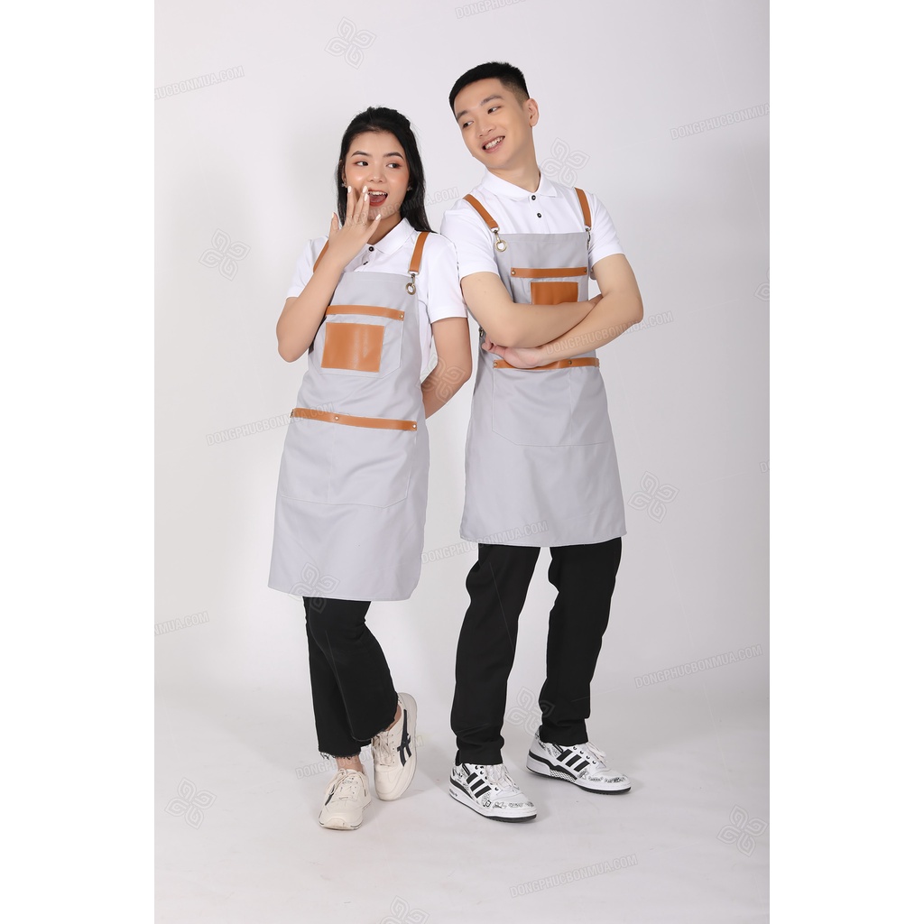 Tạp dề yếm đẹp màu pastel phối da, khóa đồng thời trang - Phục vụ quán café, nhà hàng - Kiểu dáng hiện đại, sang trọng