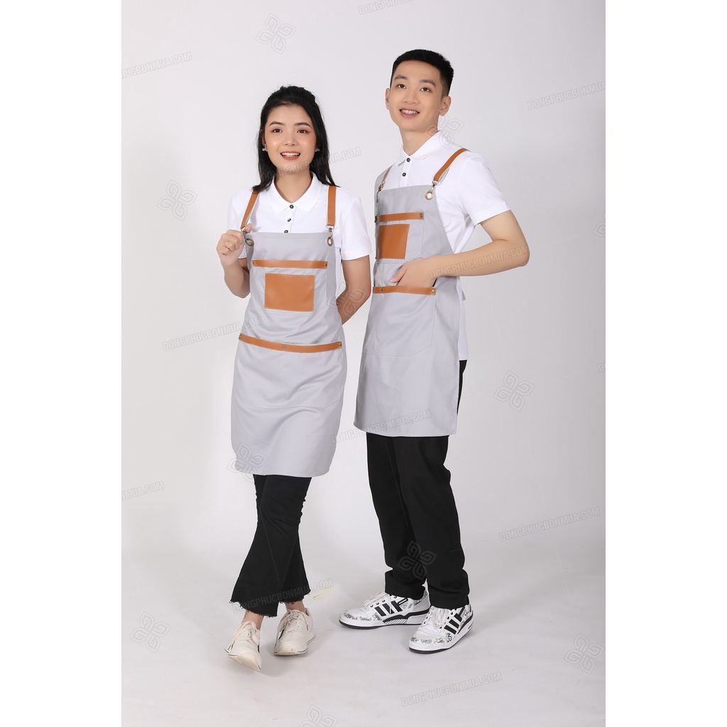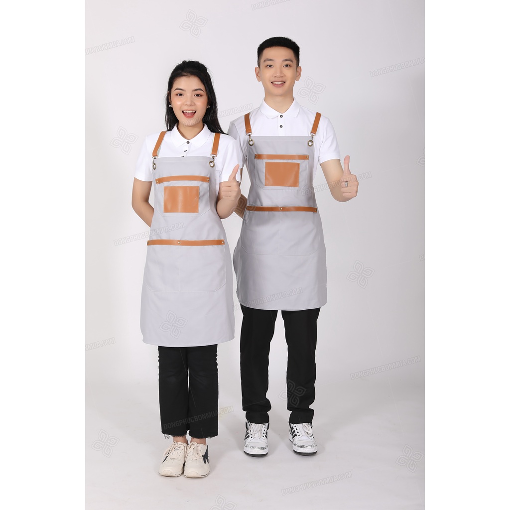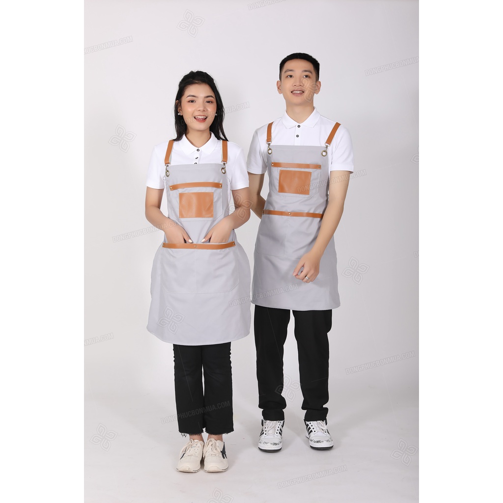 Tạp dề yếm đẹp màu pastel phối da, khóa đồng thời trang - Phục vụ quán café, nhà hàng - Kiểu dáng hiện đại, sang trọng