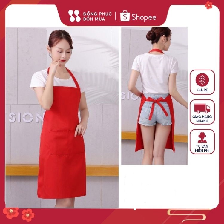 Nhà cửa & Đời sống > Dụng cụ nhà bếp > Tạp dề & gắng tay nấu nướng || Tạp dề yếm màu đỏ nổi bật - Tạp dề cho nhân viên phục vụ, nội trợ - Chất vải không thấm nước, bảo vệ tuyệt đối khi mặcCòn hàng