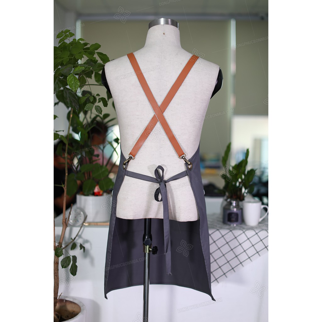 Tạp Dề Yếm Màu Ghi Phối Túi Và Dây Da Màu Nâu, Khóa Điều Chỉnh Bằng Đồng Không Gỉ Đồng Phục Đẹp Giá Siêu Rẻ