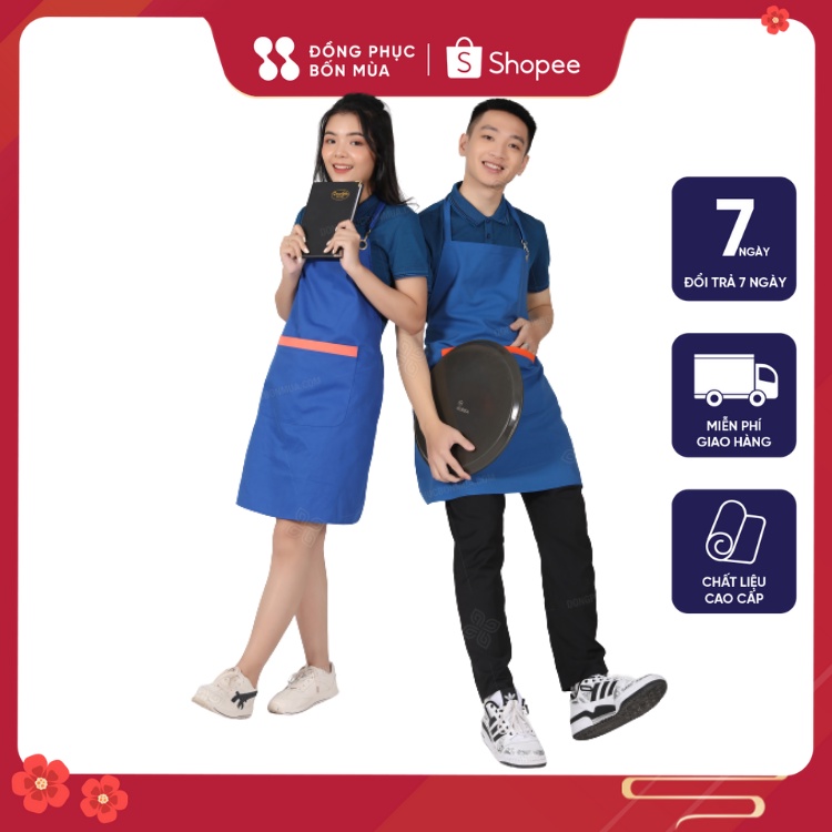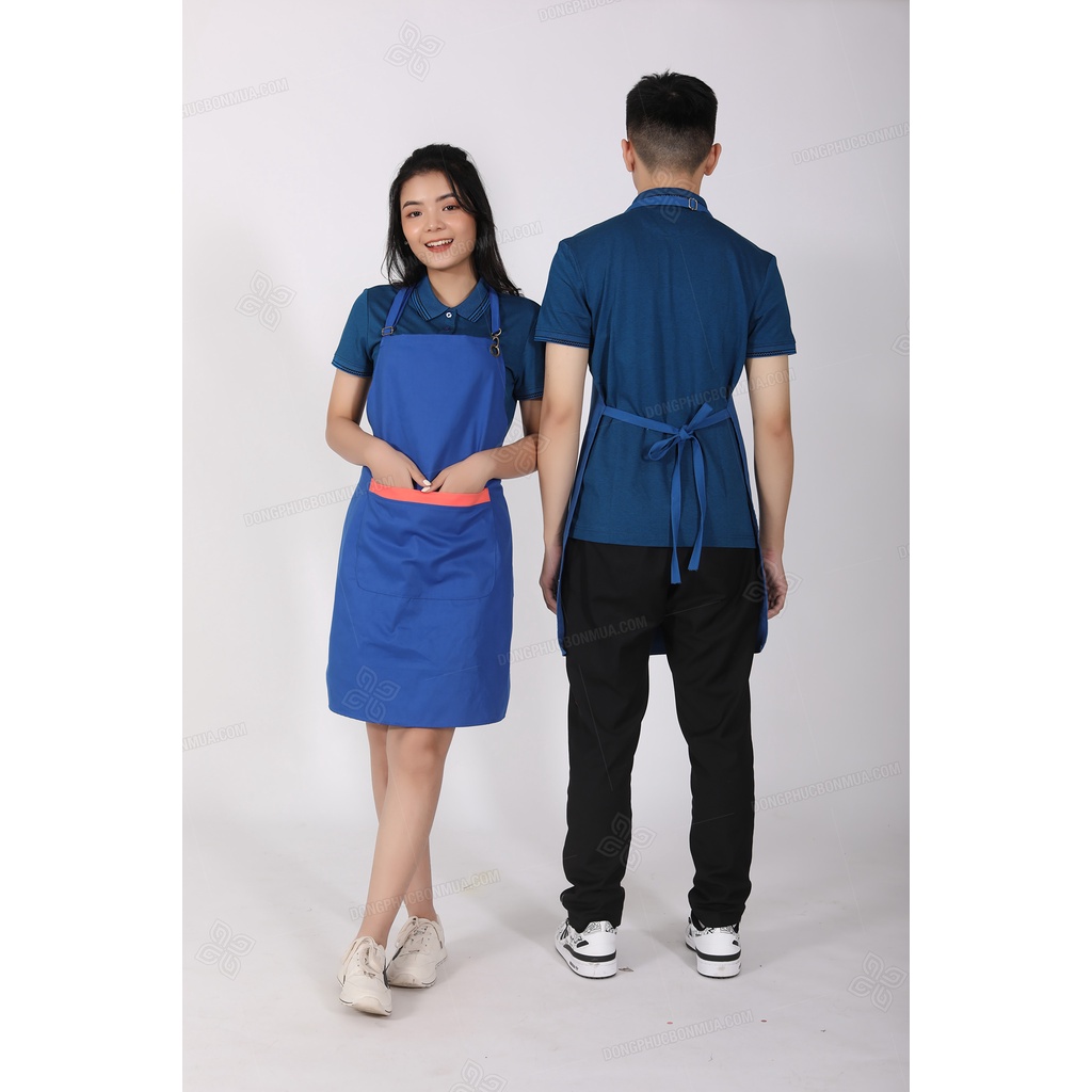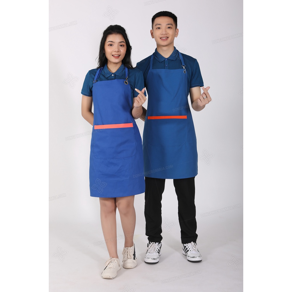 Giới thiệu Tạp Dề Yếm Màu Xanh Dương Phối Nắp Túi Màu Cam Đồng Phục Đẹp Giá Siêu Rẻ-ĐỒNG PHỤC BỐN MÙA