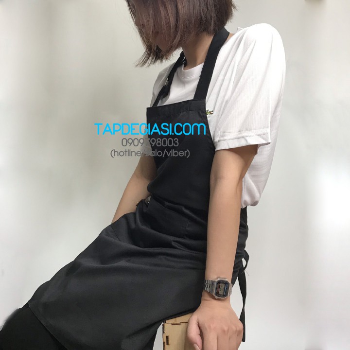 Giới thiệu Tạp dề yếm pha chế tạp dề phục vụ cao cấp phối túi 3 da (Màu Đen)
