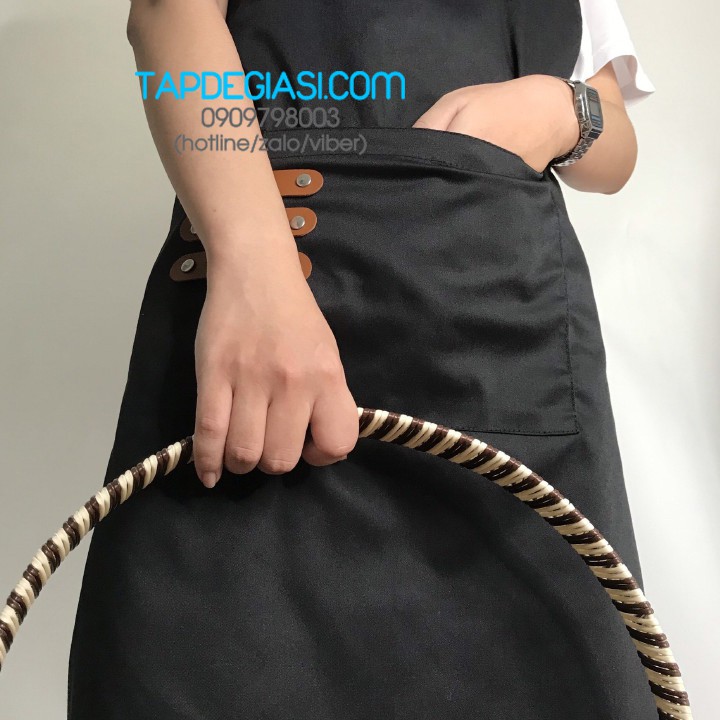 Tạp dề yếm pha chế tạp dề phục vụ cao cấp phối túi 3 da (Màu Đen)