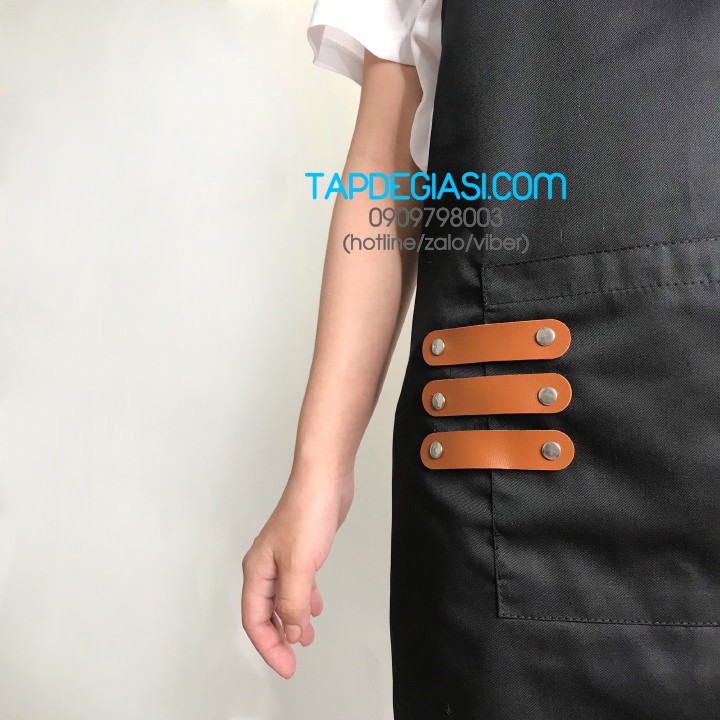 Tạp dề phối 3 miếng da cao cấp ngay túi tạo sự tinh tế và mới lạ cho tạp dề, làm cho tạp dề ĐẲNG CẤP hơn
