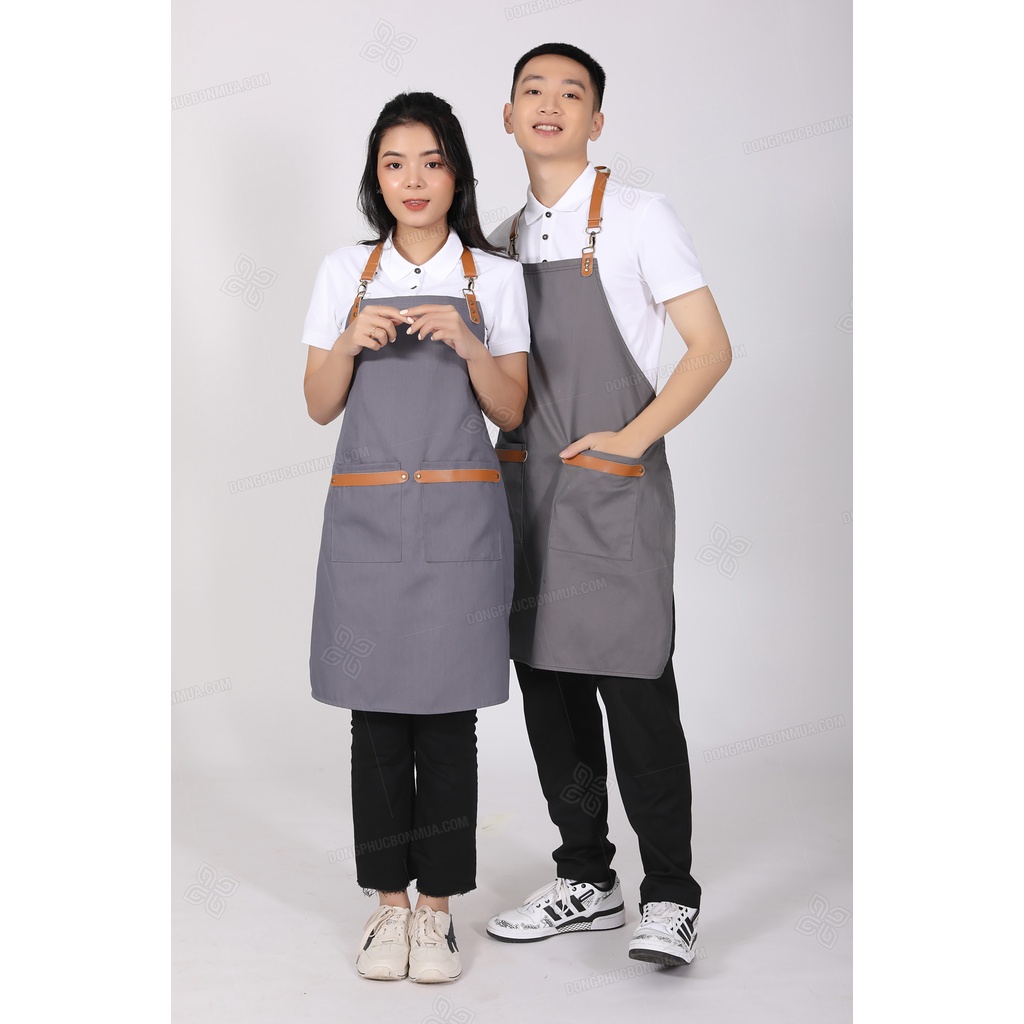 Tạp dề phục vụ nhà hàng màu ghi phối da chất kaki siêu đẹp sẵn hàng kèm video
