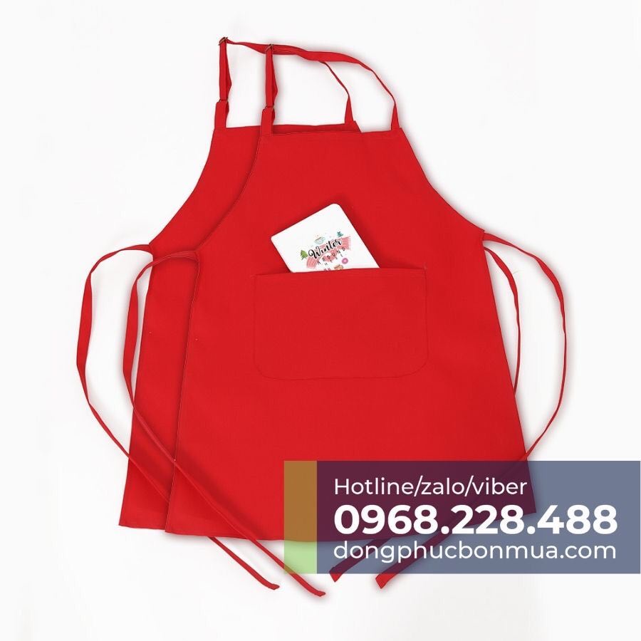 Tạp dề yếm phục vụ màu đỏ đô- Tạp dề đồng phục lên dáng đẹp, kích thước tùy chỉnh - Chất vải thoáng khí, không nóng bí
