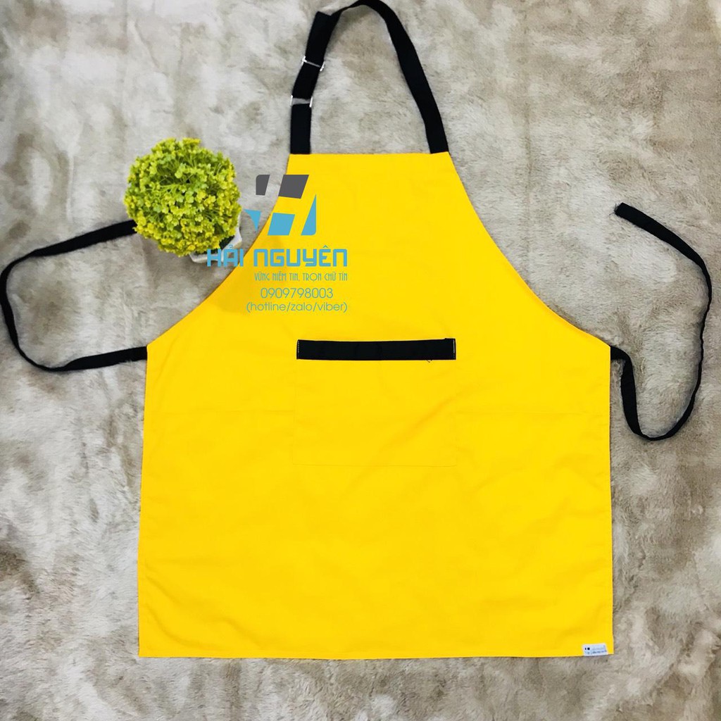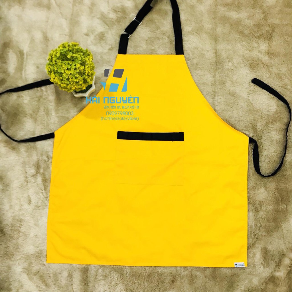 Tạp dề yếm vàng cao cấp phối túi và dây màu đen